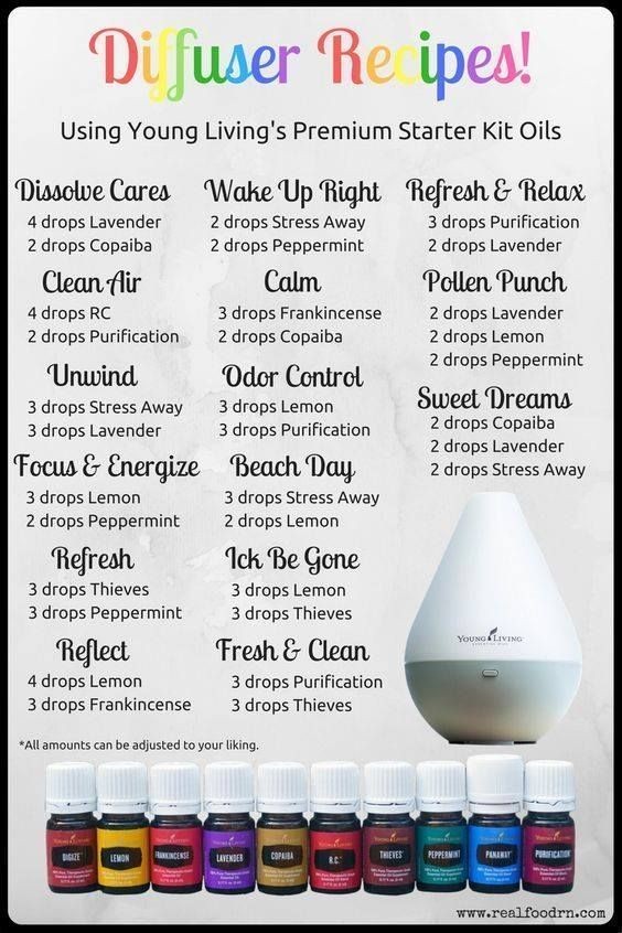 If you don’t know how to use an essential oil diffuser, check the instructions specific to your product for water and oil ratios. For instance, if you’re using the Young Living Aria™ diffuser, you’ll add 15–25 drops of oil to the water, but if you are using Young Living’s Desert Mist™ diffuser, use only 8–10 drops. There’s always a bit of math involved, so brush up on your fractions, folks!